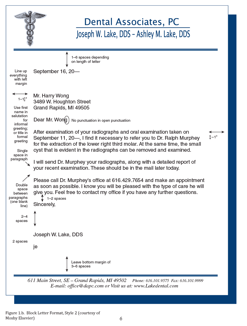 Professional writing is less formal in tone than that of a research essay or thesis, but more formal than a casual note. Dental professionals need to create professional correspondence that is effortless to read, visually appealing, and positively promotes the dental office. Along with the written words on the page, the letter’s design and format tells the reader about the office’s attention to detail, and level of professionalism.