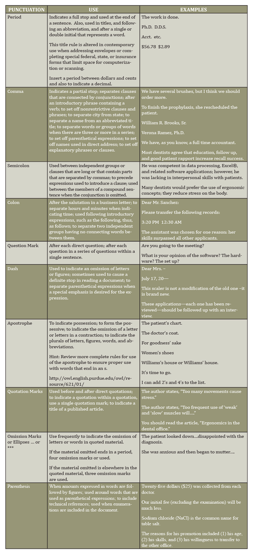 Correct punctuation is based on certain accepted rules and principles rather than by the choice of the writer. Punctuation is important so that the reader can correctly interpret the writer’s thoughts. The summary of rules given in this chapter will be helpful in using correct punctuation. The common use of periods, commas, colons, and other types of punctuation is explained in Table 1.