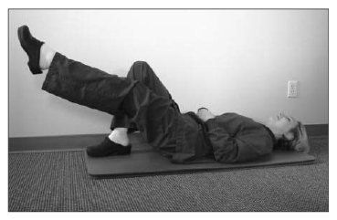 Because assistants are prone to low back injuries, exercises that strengthen the postural trunk muscles (especially the transverse and oblique abdominal muscles) and stabilize the low back are important to incorporate into an exercise routine. There are many ways to strengthen these muscles. The transverse abdominal muscles may be strengthened by lying on the floor, pulling the navel to the spine, and holding it throughout the exercise while alternately lifting one leg, then the other off the floor (Figure 20). The oblique abdominal muscles may be targeted by lying on the back and alternately reaching one hand toward the opposite knee, lifting only the shoulder blade off the floor. Pilates is an excellent exercise program to target the postural muscles of the trunk and shoulder girdle.