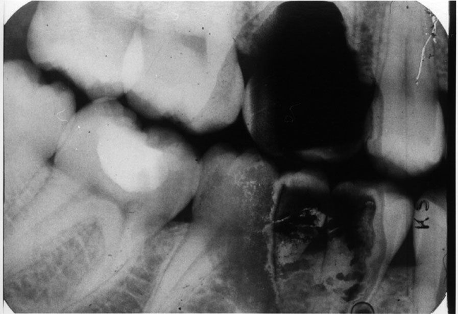 Differential Diagnosis: As with underexposed films, the developer should be checked to be certain it meets manufacturer’s recommendations regarding strength, freshness and temperature. If the solution is within tolerances, and the darkroom timer is accurate, the machine settings were probably at fault. If a correctly exposed film is overdeveloped (immersed too long in developing solution, or solution is too warm), then the resulting radiograph will look almost identical to an overexposed film i.e. too dark.