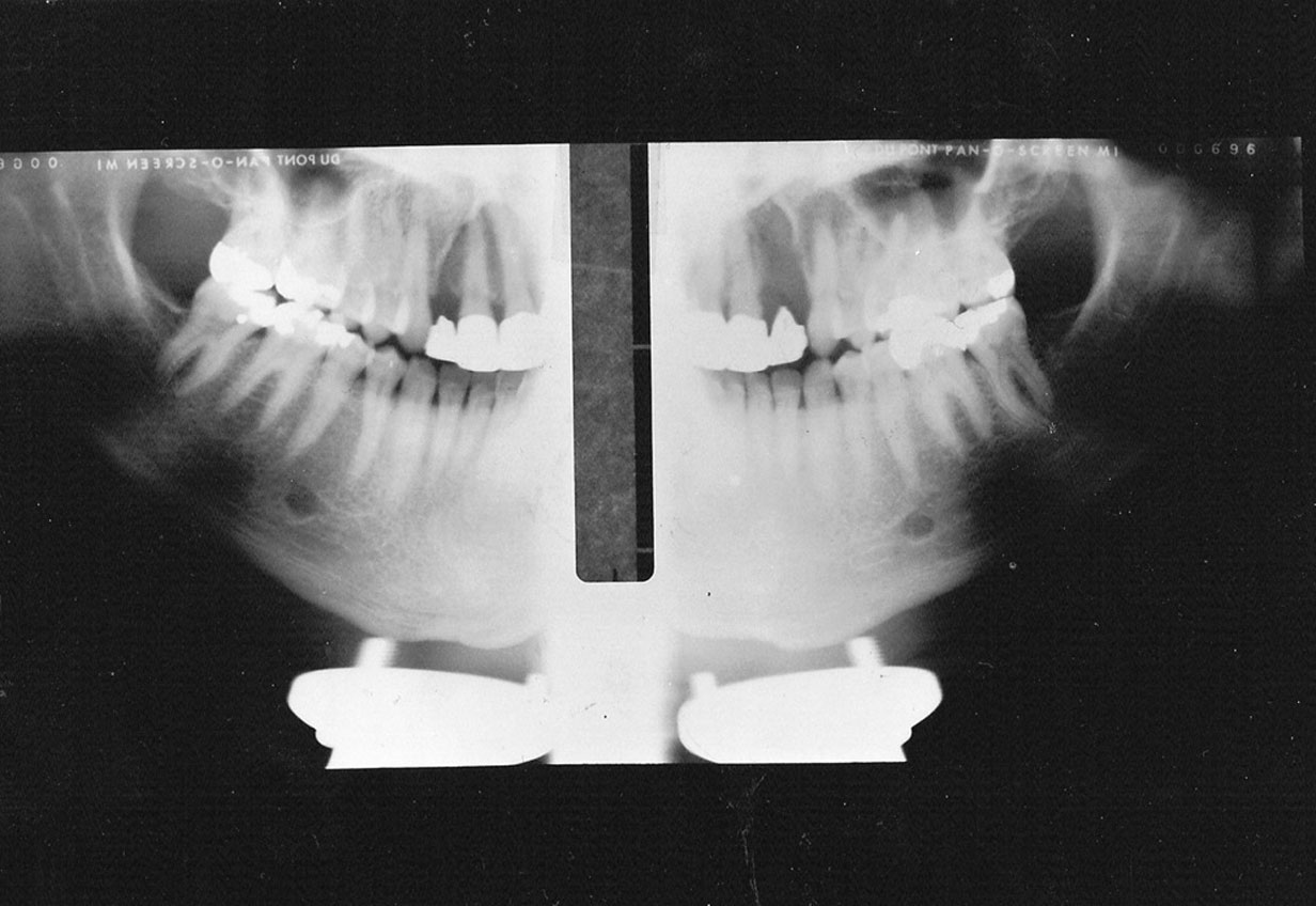 Vertical, horizontal or compound patient movements and slippage or vibration of the tubehead or film holder can produce a range of artifacts on panoramic films. With conventional films, motion produces generalized unsharpness; with panoramic films, however, motion unsharpness only affects the portion of the film that was being exposed at the time motion occurred. Therefore, depending on the extent and duration of movement, only a small, discreet portion of the exposure may be blurred while the rest of the film is within acceptable limits. Short-duration movement may be difficult to detect because the resulting artifact can look suspiciously like a pathological condition.