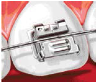 Elastic tie: The elastic tie is a tiny rubber ring that holds the archwire in place (Figure 9). These come in a variety of colors, offering fun choices for patients. (Some brackets are “self-ligating,” [Figure 10] which means that they do not need the elastics to hold the arch-wire onto the brackets.)
