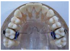Other removable appliances: A bite plate (Figure 13) is an acrylic appliance that reduces a deep bite by preventing the posterior teeth from touching. A lip bumper (Figure 14) is a 0.036” size buccal wire that fits into the tubes on the mandibular molar bands. Pressure from the lips creates space along the dental arch. A splint is used for the treatment of TMD and facial pain. They may be designed for either arch depending on the treatment objectives. A tooth positioner (Figure 15) is worn after the braces are removed to achieve minor tooth movement and set the occlusion.