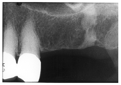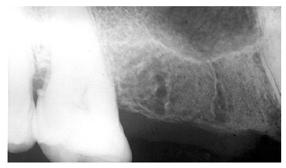Occasionally dental extraction sites lay down a fibrous tissue healing. Such tissues appear as radiolucent areas such as that in Figure 18 and sometimes last for periods well in excess of the normal healing time.