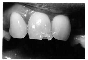 Traumatic injuries, extensive caries and oral neglect can lead to fracturing of the dental tissues. Maxillary incisors are particularly prone to traumatic injuries. The fracture often leads to losing portions of the tooth crown such as the traumatic loss of the incisal edges shown in Figure 21.