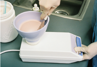 The Alginator is a small countertop piece of equipment (Figure 3) that produces consistent uniform and homogeneous alginate mixes. Instead of manual hand spatulation, the Alginator rotates the bowl automatically at 300 times per minute. Read the manufacturer's operating instructions before using this equipment.