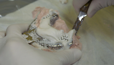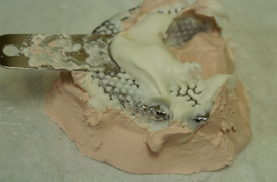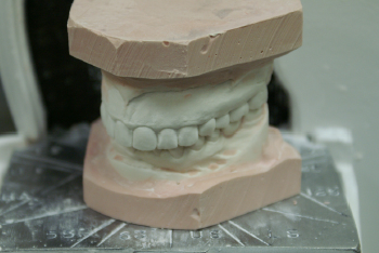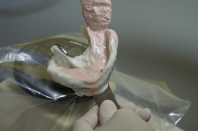 10. The study model will begin to set slightly while the operator prepares the base/art portion material for the study model.