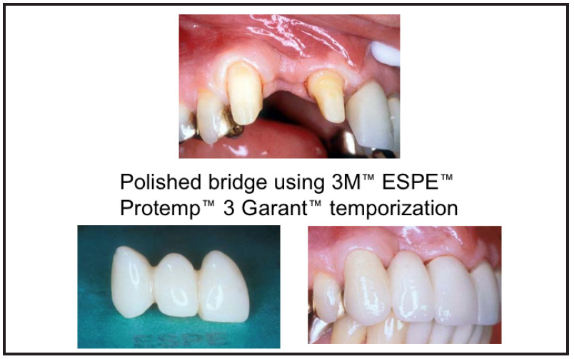 It is important to provide protection for the teeth during these times. The provisional must be properly fabricated and cemented. The treatment performed reflects the entire dental practice. Therefore, when a provisional is esthetically pleasing, remains intact, cemented and is comfortable, the gain is much more than a well-fitting provisional.