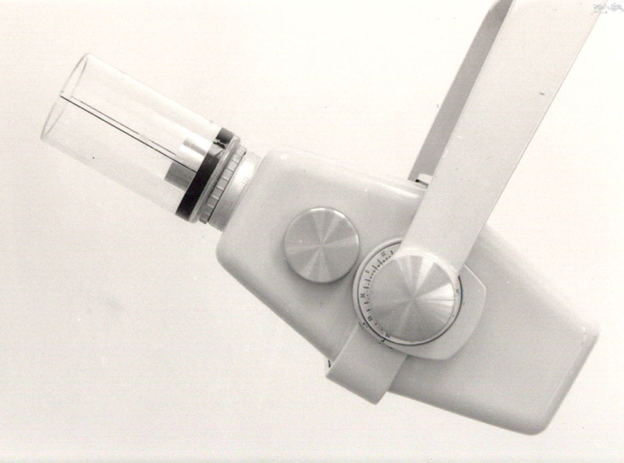 Receptor placement: Use a type 4 receptor. With the tube side of the receptor toward the mandible, the receptor is placed crosswise in the mouth, like a cracker. It is gently pushed backwards until it contacts the anterior border of the mandibular ramus. The patient bites down gently to maintain position.