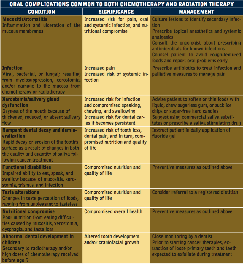 - Oral Complications of Cancer Treatment: What the Dental Team Can Do