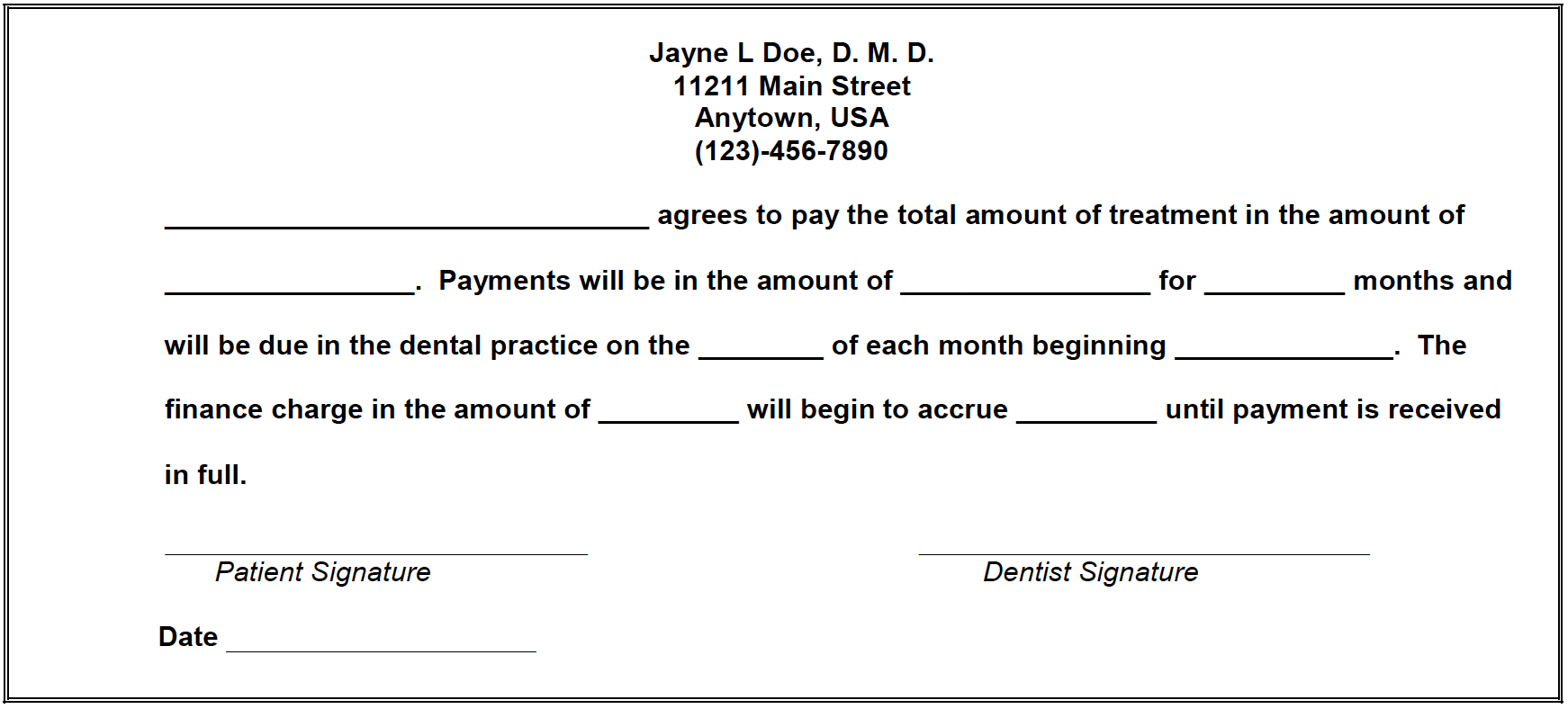 Finance charges that accrue on unpaid balances will go into effect at the agreed time. Some dental practices allow a thirty-day grace period, while others allow a ninety-day grace period. It is the decision of the dentist as this directly affects the profit margin. Another factor the dentist should consider is the size of the patient database.