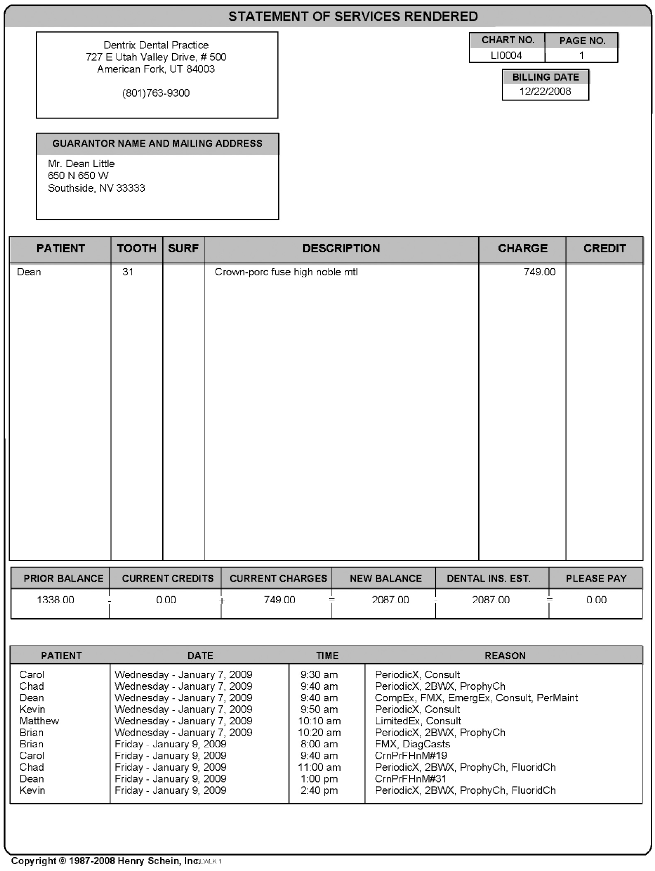 As the overall health of the dental office relies on monies being received and distributed, it is necessary to understand proper protocol and procedures. All of the numerous financial records should be protected for the patients, employees, and employer(s) alike. It is important for the office to receive fees quickly and attribute monies to the proper patient accounts. When those tasks are performed efficiently, office bills and employee payroll can be distributed. These duties can be performed swiftly and professionally via the use of a computer and the corresponding dental software, but also by using traditional manual methods and specialized office forms.