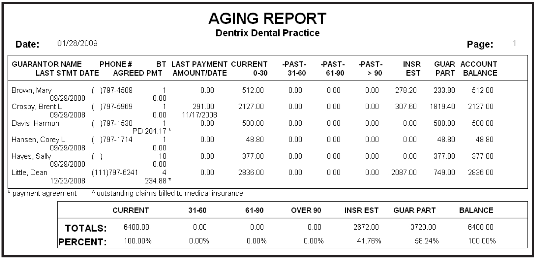 Information provided in this report is helpful in tracking accounts and notifies the assistant which accounts are overdue. The computer can automatically generate this report with a breakdown of the account age. For dental practices that do not use a computer system for bookkeeping, it is possible to generate a manual aged account report.