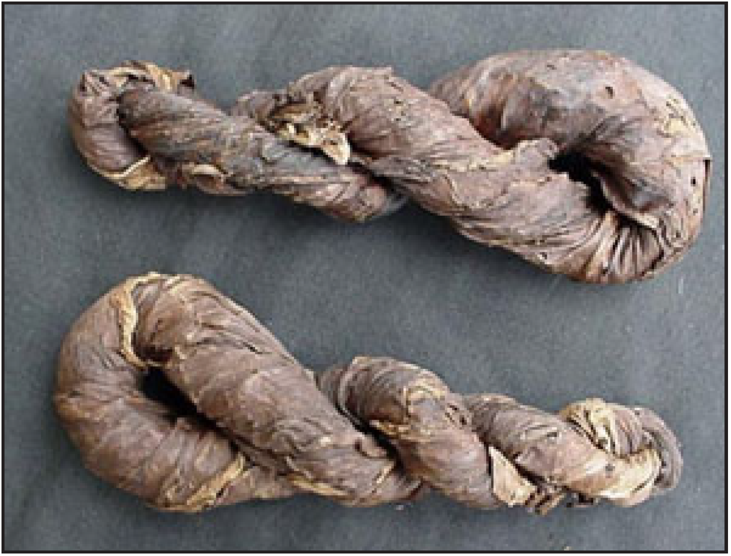 A third form of chewing tobacco is produced from a dark tobacco leaf, cured, processed and twisted into strands or ropes and dried.1