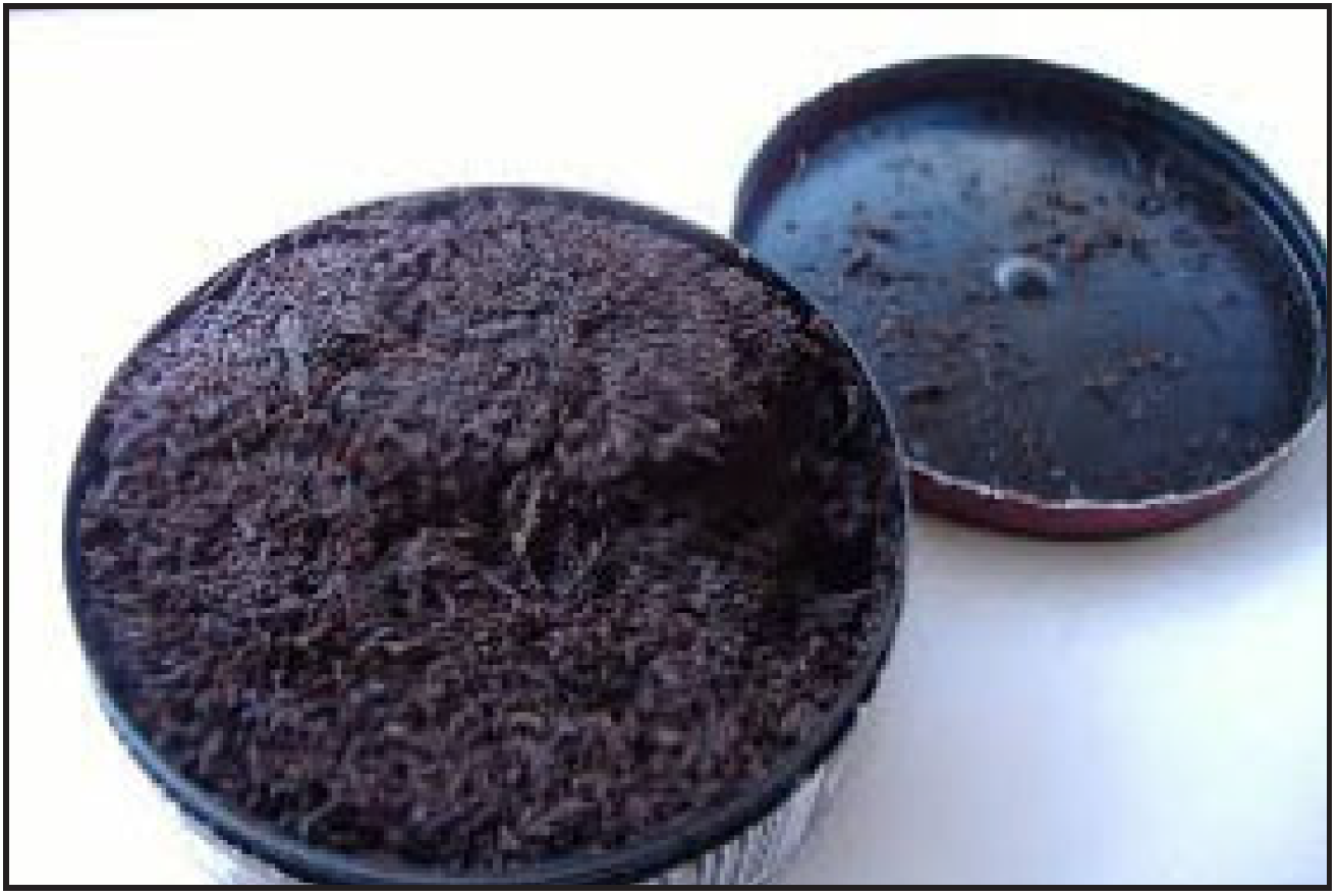 Dry snuff is produced from fire-cured tobacco. This tobacco is fermented after the curing process, allowed to dry and finely ground into a powder. With moisture content of less than 10%, dry snuff can be inhaled through the nose or placed in the mouth between the cheek and gum which requires spitting.1