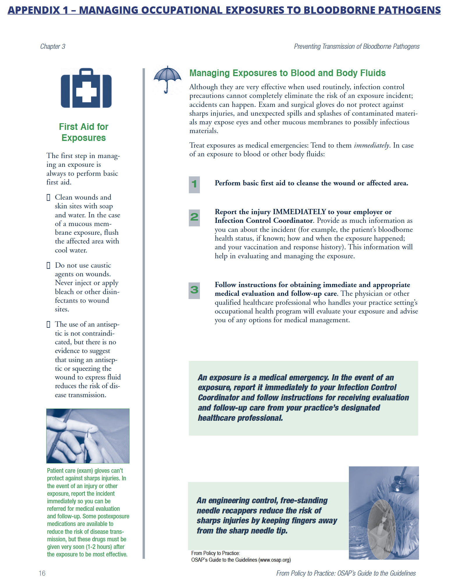 See Appendix 1 - Managing Occupational Exposures to Bloodborne Pathogens