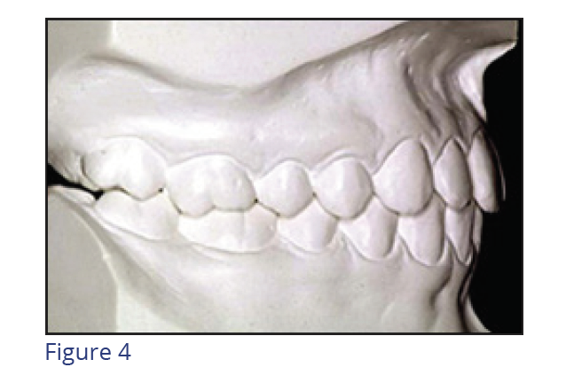 According to Andrews' definition, normal occlusion exists when the mesiobuccal cusp of the maxillary first permanent molar occludes in the groove between the mesial and middle buccal cusps of the mandibular first permanent molar (Figure 4, also known as Class I dental occlusion).
