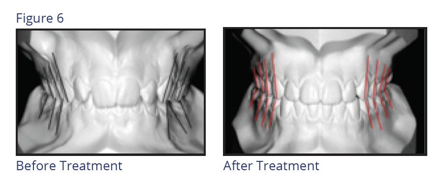 The depth of the curve of Spee should be fairly flat ranging from 0.5 mm to 1.5 mm at its deepest point. An average curve of Spee is 1 mm. Figure 8 illustrates curves of Spee before and after treatment.