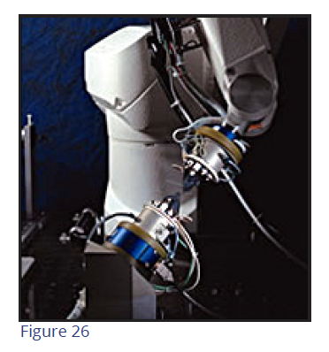 Intraoral scanning and the use of robots to fabricate patient-specific archwires is now being introduced to the orthodontic profession (Figure 26). The scanner is an intraoral three-dimensional (3D) imaging device based on white light and active triangulation. The software allows for interactive 3D viewing of the malocclusion and a fine tuning of diagnostic set-ups to customize occlusion goals. The robot customizes the patient's archwires per the orthodontist's virtual treatment plan.
