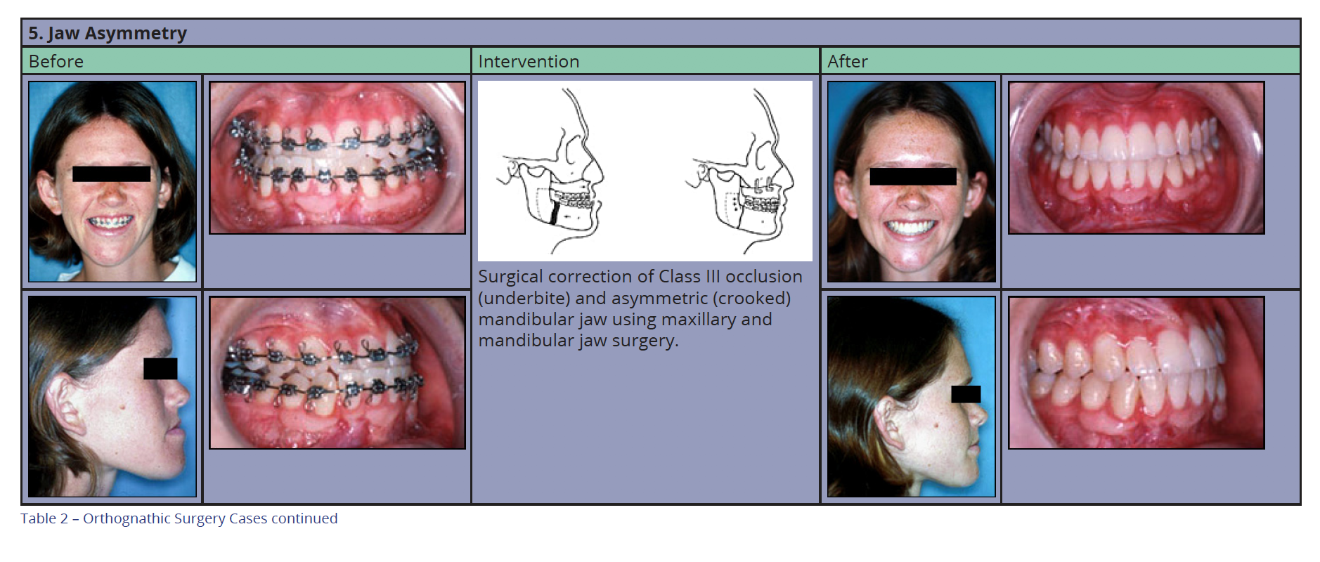Table 2 illustrates situations that lend themselves to orthognathic surgery.