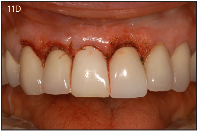 An implant most closely replicates the feel of a natural tooth. Once it is osseointegrated, many patients cannot differentiate an implant from a natural tooth. Furthermore, dental implants do not decay or need a root canal. Even though the cost is slightly more than a bridge, it is a great investment for the future, as implants usually last longer than a bridge. A 10-year report on posterior single implants shows a success rate of 97%.29 Once an implant is placed, an integration/healing time of approximately 4 months is necessary before final crown is placed. A temporary crown can be placed the same day the implant is placed. (Figures 11A-E)