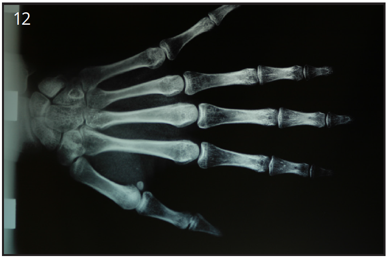 Young patient under 16-17 years old cannot receive dental implants. A hand-wrist radiograph is taken to determine if growth is complete . (Figure 12) If the patient is still growing, a resin-bonded bridge can be used as an option until their growth is complete and they are an implant candidate.