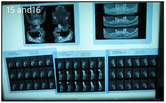 The standard of care today is to have a CT-scan prior to implant placement, to be able to visualize the jaw structure, position of the nerve canal and the quality and quantity of bone available. The CT scans have been used since 1973, and in dentistry since 1987. The latest technology in CT scans is cone beam, which offers less radiation than traditional x-rays. Medical CT scans use 40 to 60 times more radiation than cone beam CT scans in dentistry.19 Some dental offices have CB-CT scanners and dental assistants may be trained to take scans, similar to taking a panoramic x-ray. (Figures 15 and 16)