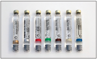 • The color code shall consist of a band 3.0±0.5 mm wide at a distance of 15±5 mm from the stopper end of the cartridge.