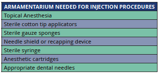 • Before the local anesthetic is administered, address any fears or nervousness the patient may be experiencing.