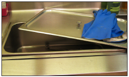 There are two basic methods of mechanical cleaning used in dentistry. The first, ultrasonic cleaners, consist of a chamber into which the instruments are place. (Figure 1) A solution of water and detergent (formulated specifically for use with the ultrasonic cleaner and dental instruments) clean instruments with the assistance of sonic waves. The sonic waves produce cavitations, the mechanical means of cleaning instruments. A basket holds the instruments slightly elevated from the floor of the ultrasonic chamber, increasing the efficacy of the cleaning method. During operation, cover the ultrasonic machine to prevent the aerosolization of the fluids and potential contamination of the surrounding surfaces.