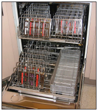 The second mechanical cleaning method is the use of instrument washers. (Figure 2) Instrument washers are a class of device more efficient and effective for the cleaning of dental instruments. Traditionally used in central sterilization services, such as in hospitals, these devices are relatively new to the dental profession. Two major categories of instrument washers are available to the dental market: