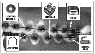 Fixed appliances, or braces, consist of a combination of bands, brackets, archwires, and auxiliaries (such as tubes or hooks) (Figure 6). These appliances are capable of moving a tooth in any of the six directions: mesially, distally, facially, lingually, apically, or occlusally.