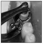 Band seater (or bite stick): consists of a molded plastic handle with a triangular stainless-steel serrated working area (Figure 10). This is used to aid in seating a molar mand.